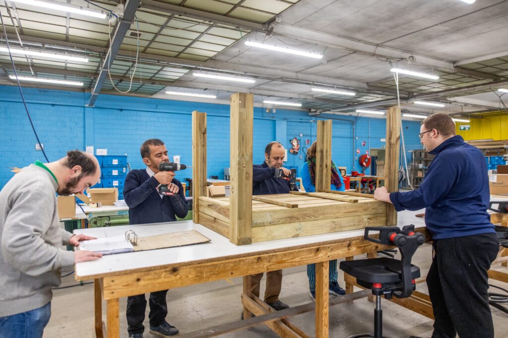 Nos ateliers transforment vos déchets en ressources : bois, mobilier urbain, potagers et objets design issus du réemploi.