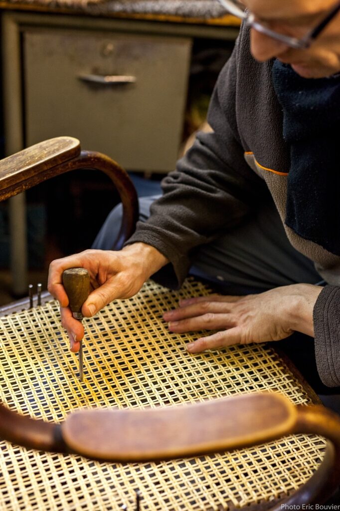 Métier traditionnel transmis à Citeco dans le cadre d’une formation pratique, le cannage est réalisé avec soin pour redonner vie à vos meubles.