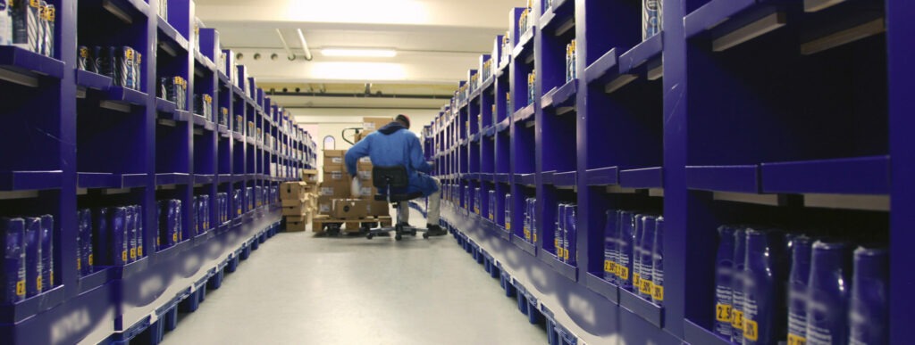 Gestion de stocks et expédition. Entrepôt de 4000m², racking de 12 m de haut, emplacements pour plus de 7.000 palettes. Plus de 700 m2 de frigos.